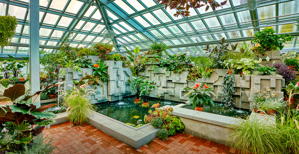 Visitors will now enjoy stunning additions like a light-filled lobby and a brand-new water feature that incorporates moving water in nine different ways. With its monotone color scheme and sparkling LED lighting, the new zones provide a space for visitors to interact with plant life. Floor-to-ceiling windows offer views of the exterior landscape. A total of 432 pieces of double-pane low emissivity glass allow for sunlight, while an additional 62 pieces open up the inverted side walls.